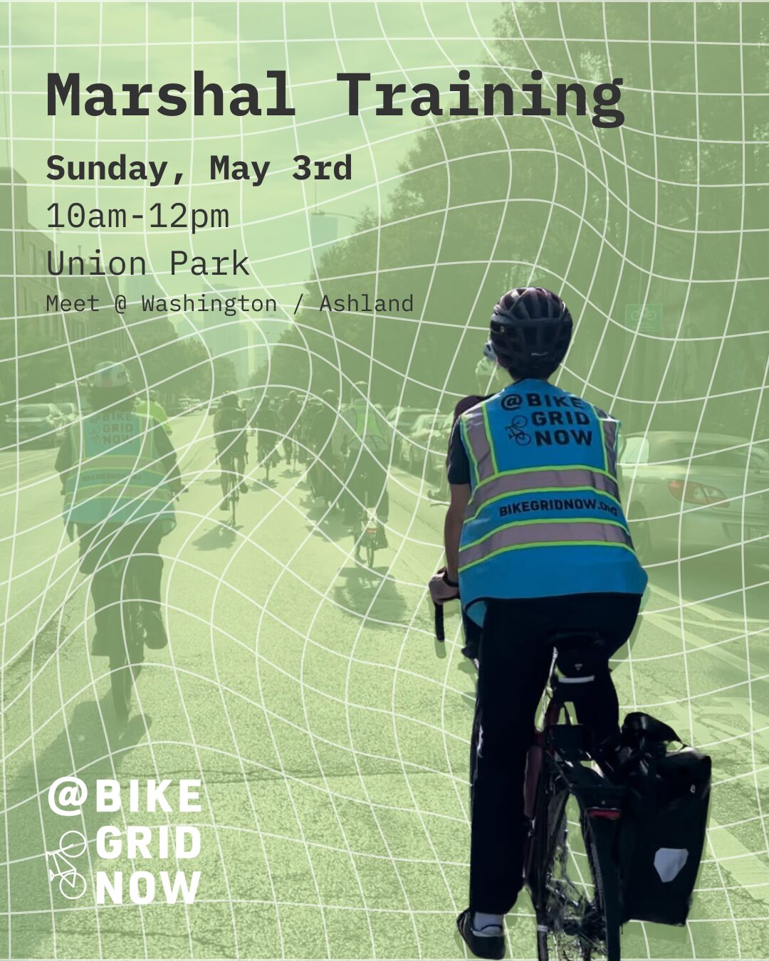 Back for 2026: Join us for a marshal training at Union Park! Come out on Sunday May 3rd and we’ll teach you how to lead a group ride, cork, and de-escalate safely with drivers.